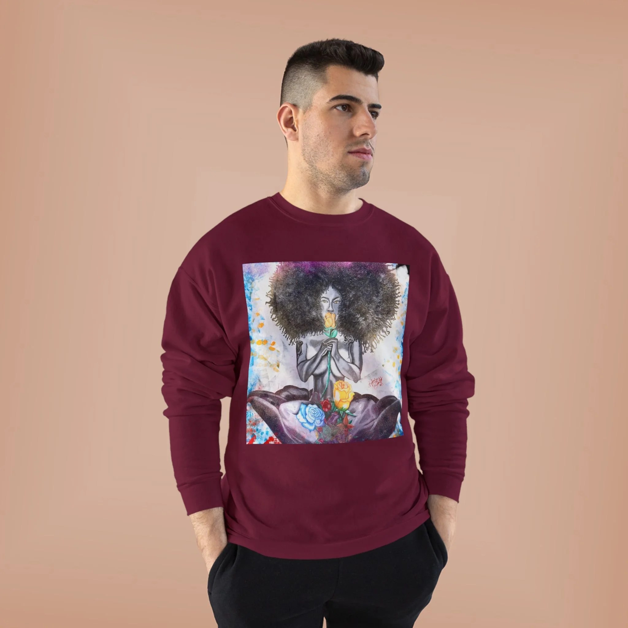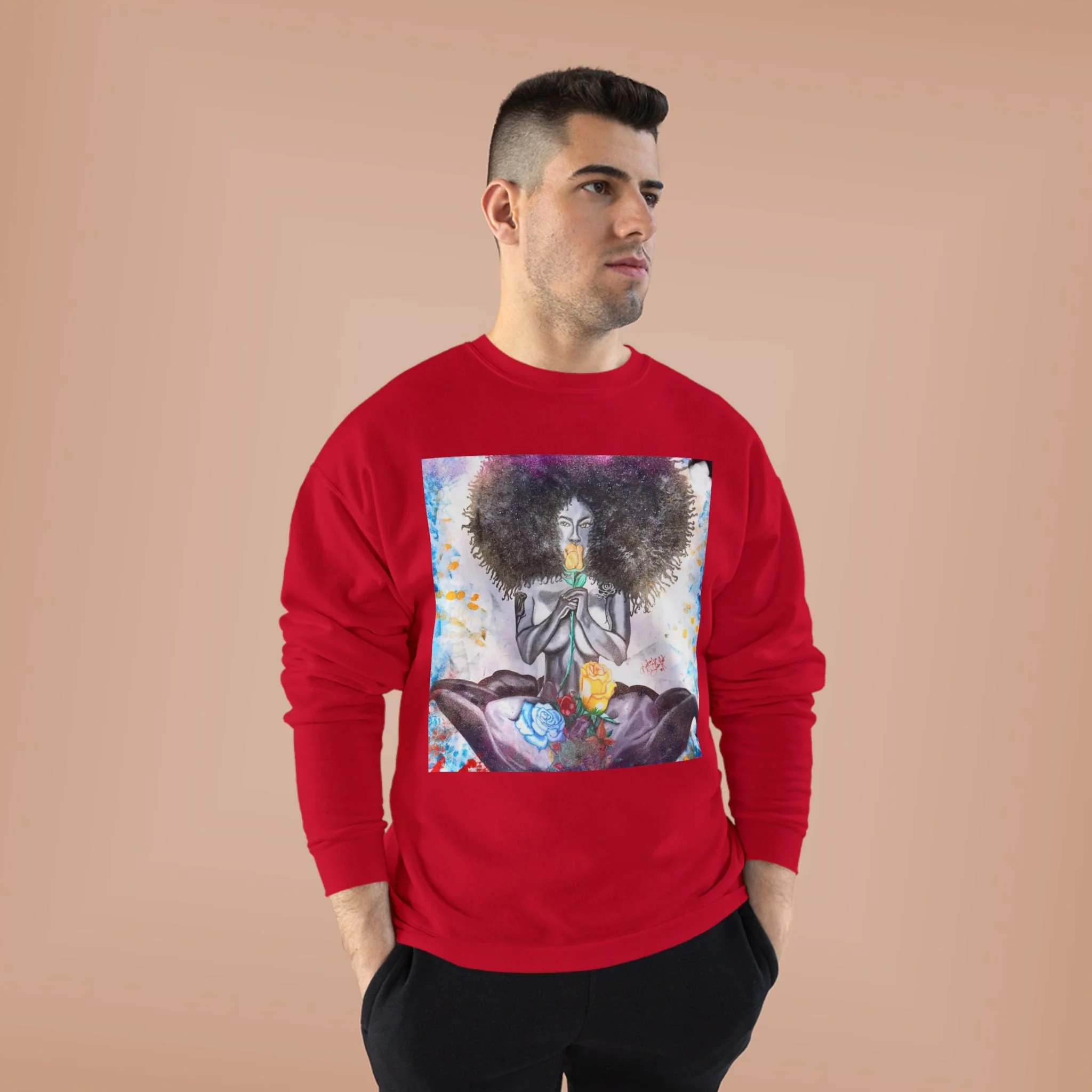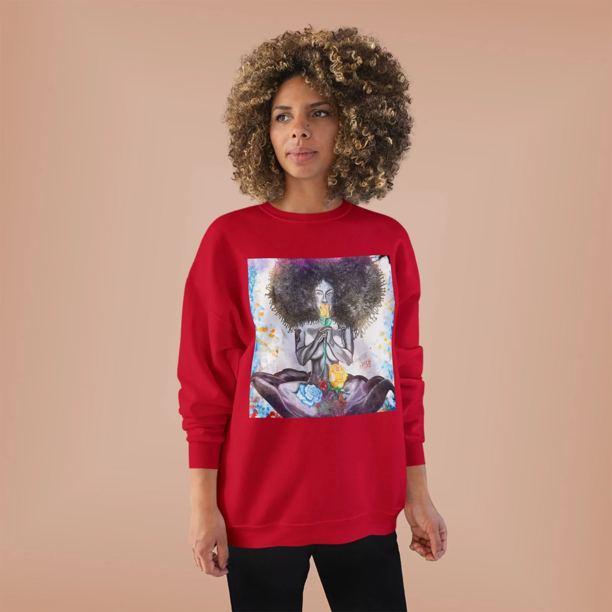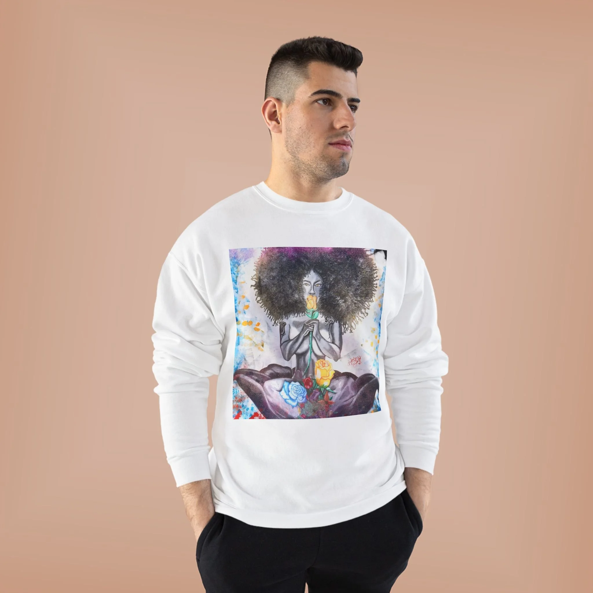 Embrace comfort and style with this Unisex EcoSmart® Crewneck Sweatshirt. Made for all seasons, this sweatshirt combines a soft fleece interior with a durable exterior, offering a cozy vibe that's perfect for lounging at home or a casual outing. The unique design features beautiful artwork that captures attention and expresses personal style, making it an ideal choice for creative souls and art lovers alike. This sweatshirt is perfect for everyday wear, cozy date nights, or casual hangs with friends. It’s an excellent gift for birthdays, holidays, or just because for anyone who values comfort and sustainability. Suitable for those who celebrate individuality and seek expressive yet functional apparel.