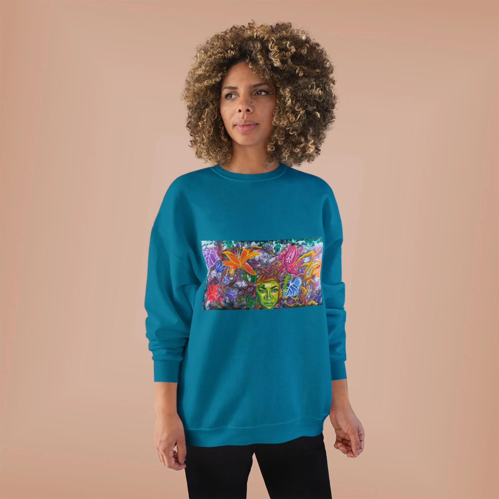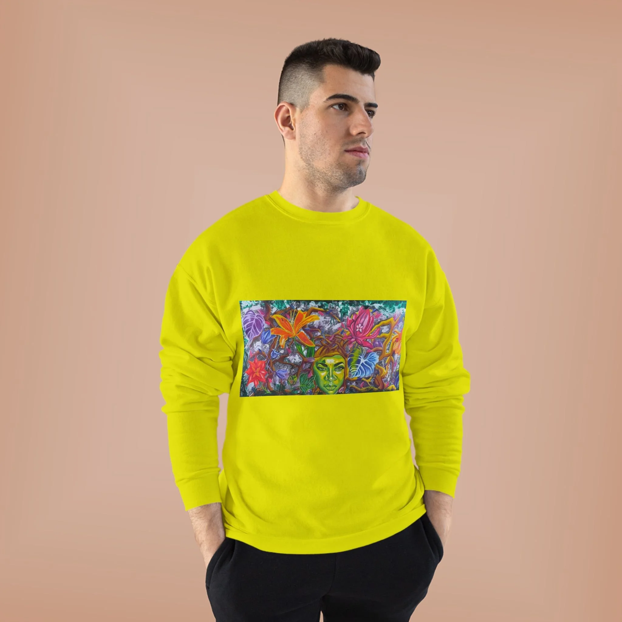 Embrace comfort and style with this eco-friendly Unisex Crewneck Sweatshirt. Perfect for everyday wear, it features a vibrant, artistic design that adds a pop of color to your wardrobe. This sweatshirt gives a cozy and relaxed vibe, making it ideal for lazy weekends or casual outings. Fashioned from a durable fabric that blends cotton and polyester, it provides both warmth and breathability. It's an excellent choice for anyone who loves to express their individuality through unique clothing. Great for gifting during holidays, birthdays, or special occasions, this sweatshirt resonates with eco-conscious shoppers and art enthusiasts alike. Wear it while lounging at home, out with friends, or during festive gatherings.