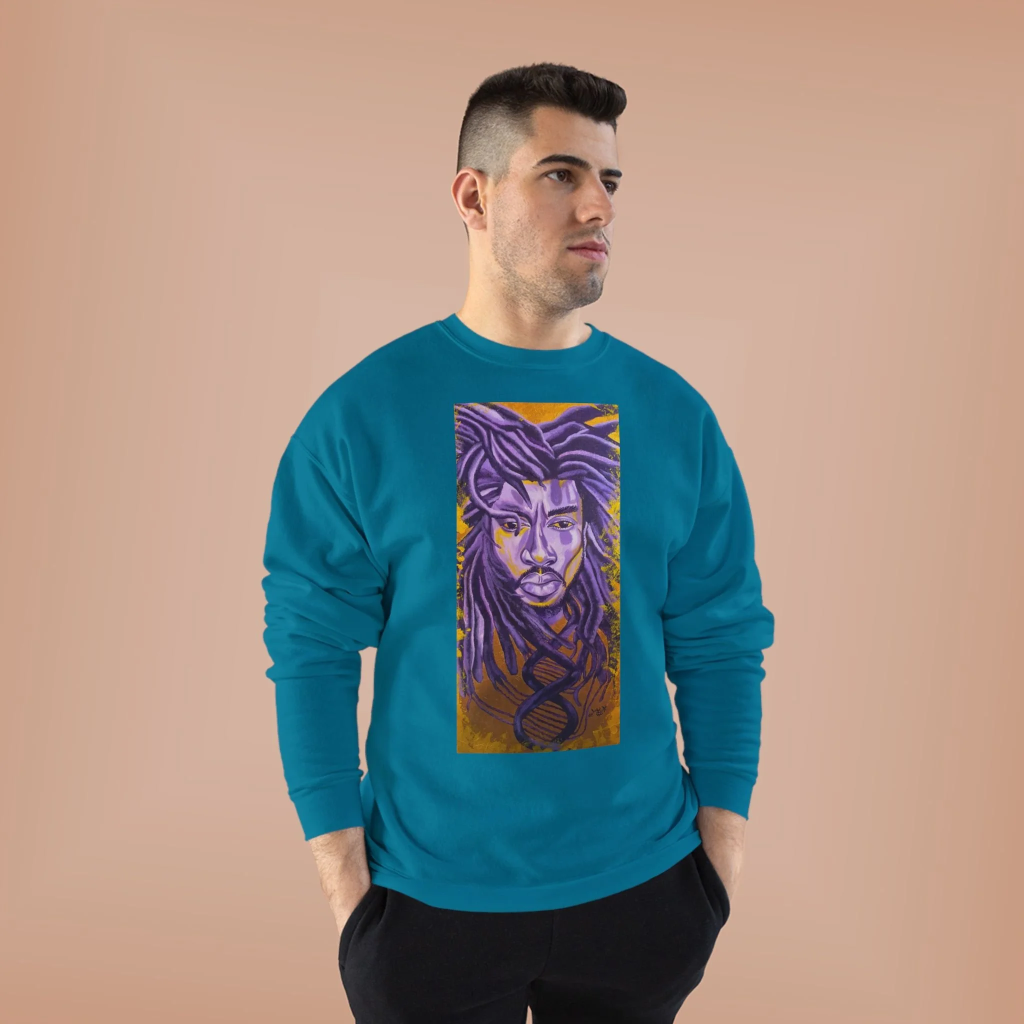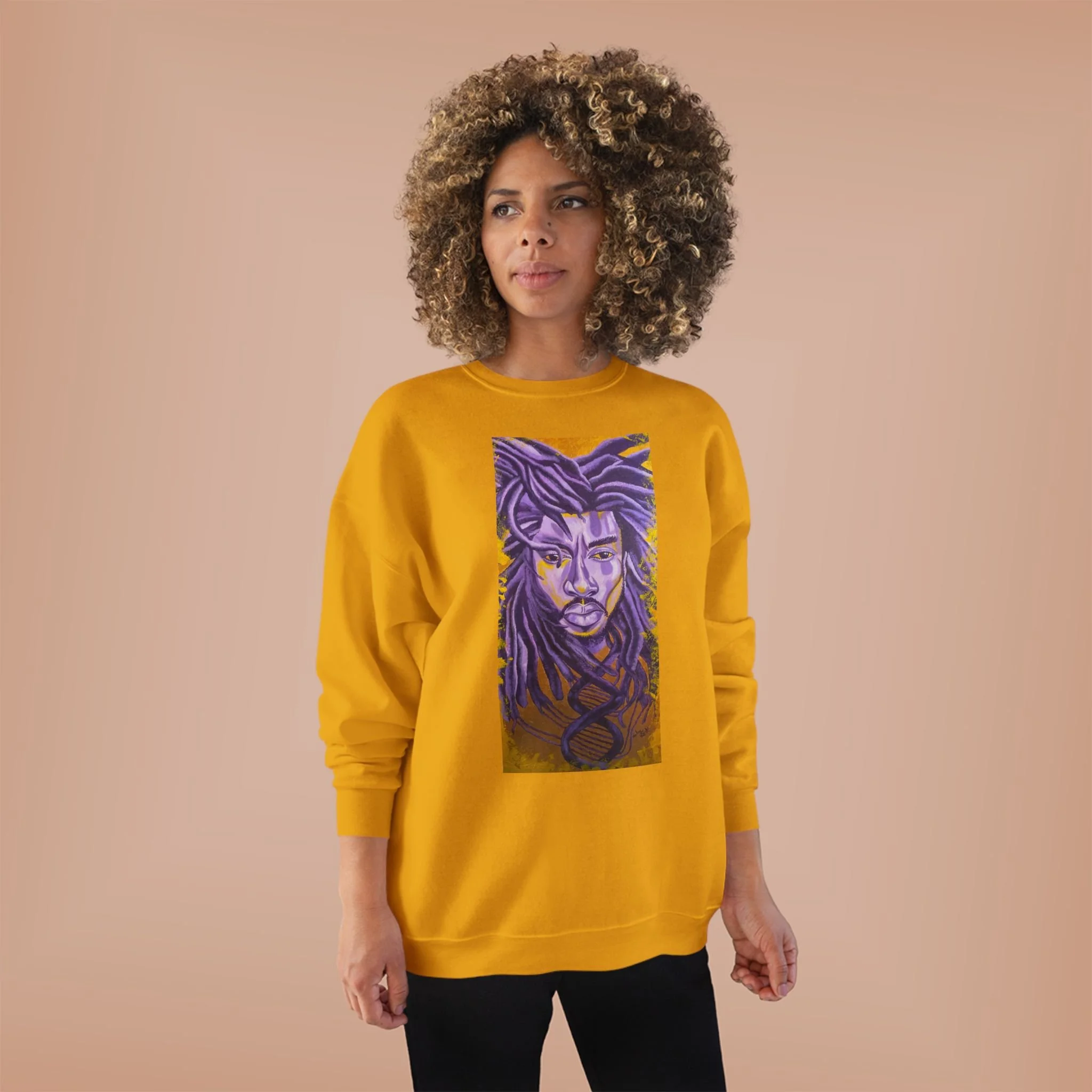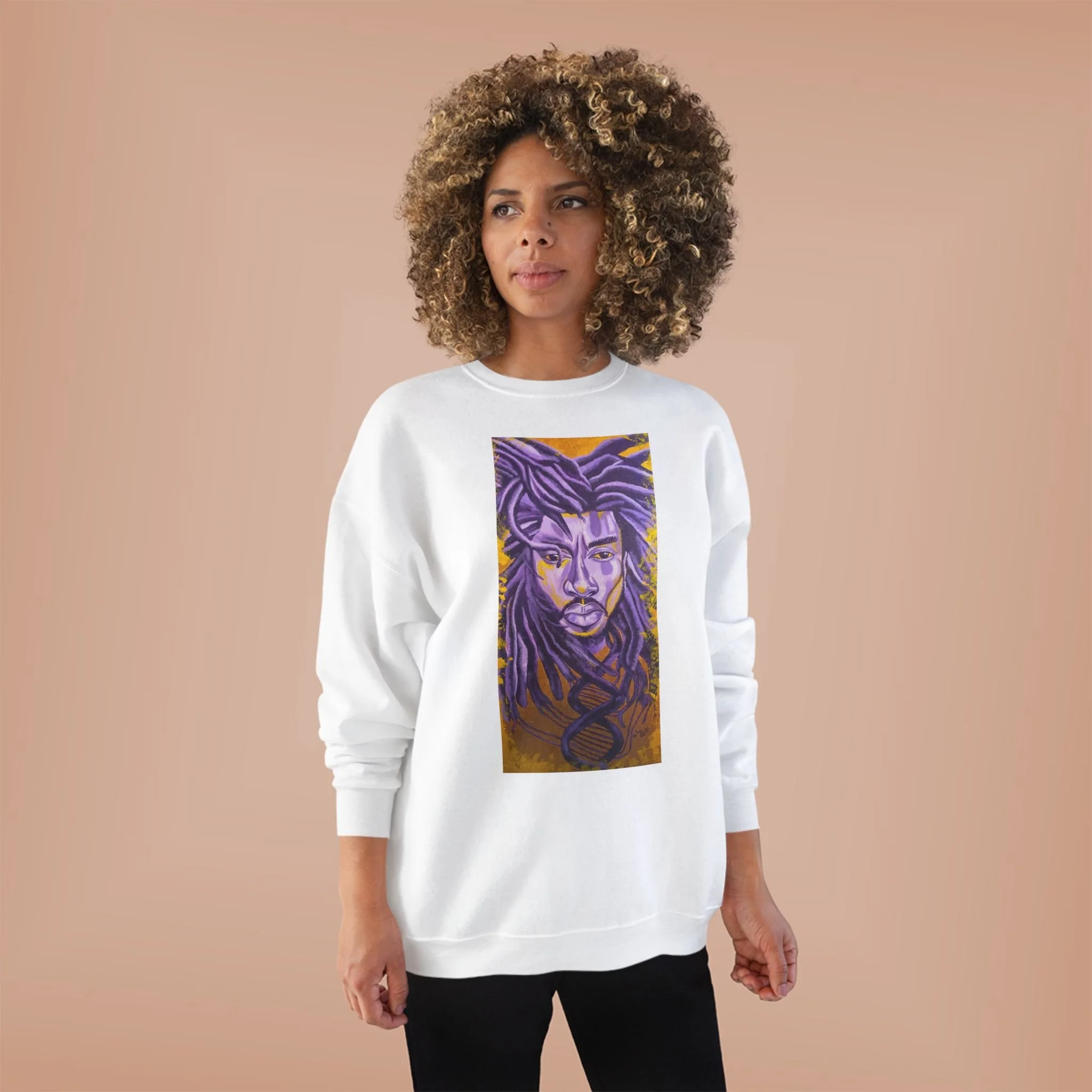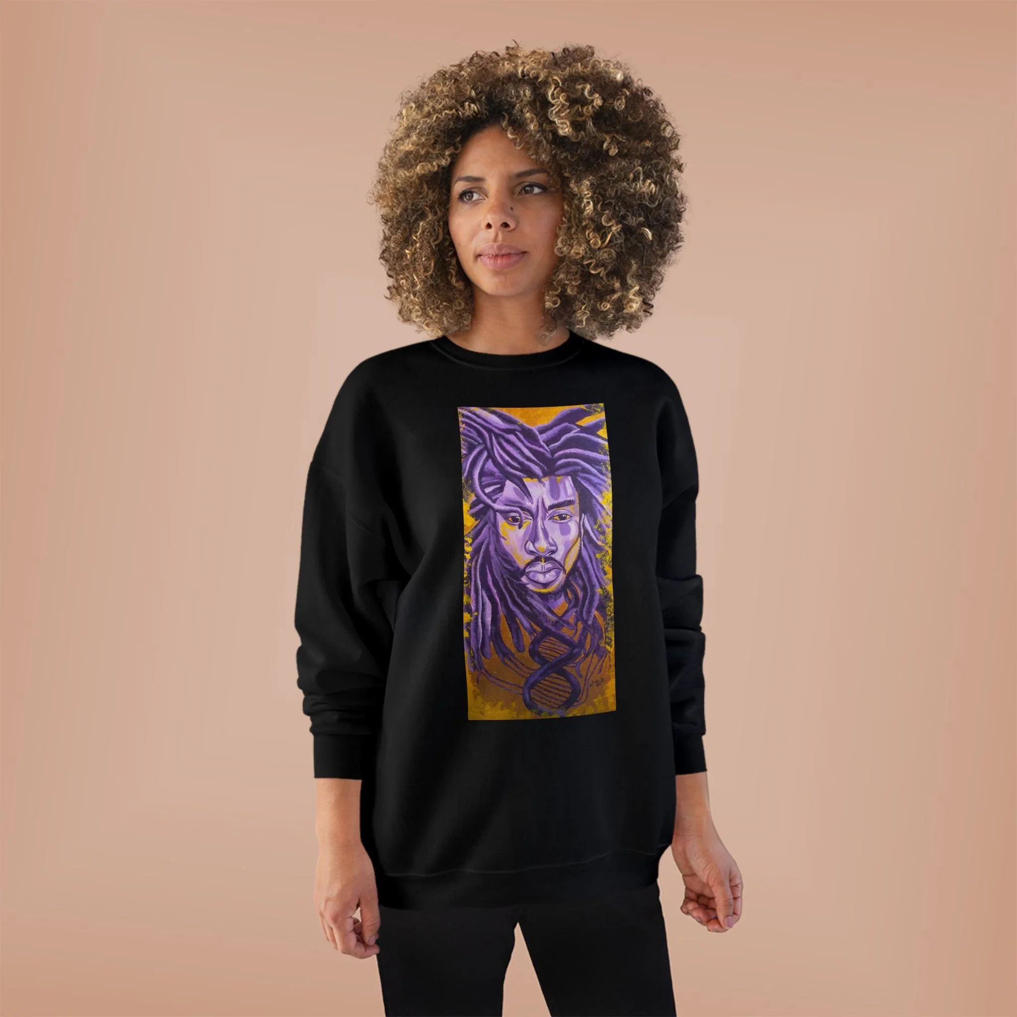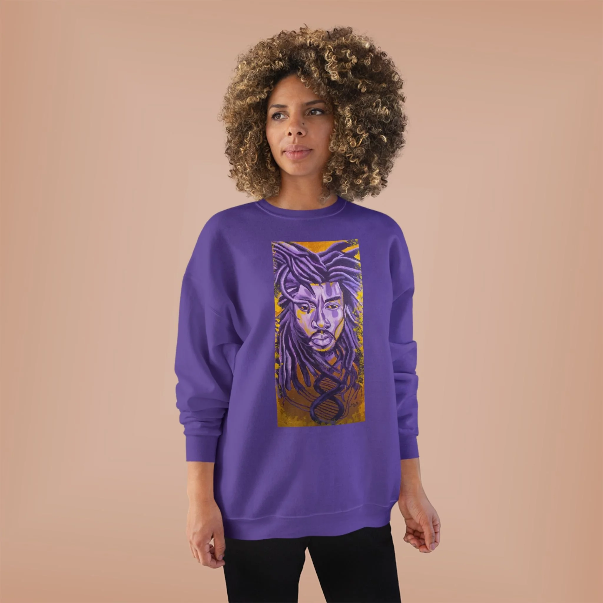 Embrace comfort and style with this Unisex EcoSmart® Crewneck Sweatshirt. Its unique design exudes a warm, artistic vibe that's perfect for those who appreciate individuality in their wardrobe. Soft fleece fabric ensures a cozy feel, making it an ideal companion for chilly nights or casual outings. This sweatshirt is perfect for creative souls, artists, or anyone looking to express their unique flair. It's a fantastic gift for holidays, birthdays, or celebrations where personal expression shines, such as housewarming or just because. Wear it at family gatherings, art shows, or even just lounging at home.